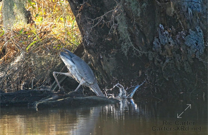 A swampy ditch may not be your idea of a good place for lunch, but some of us think it works pretty well. This great blue heron here grabs a small catfish near Whichards Beach. I saw this guy January 7, 2022.