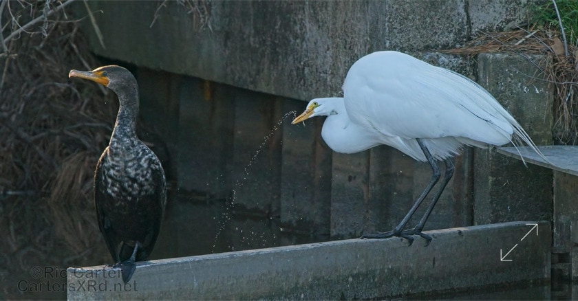 Double-Crested Cormorant & Great Egret, Outfall Canal 2