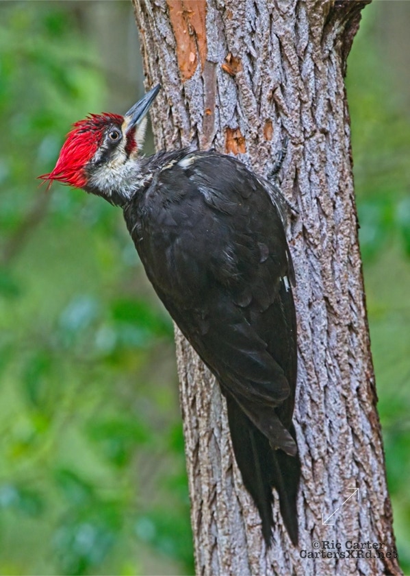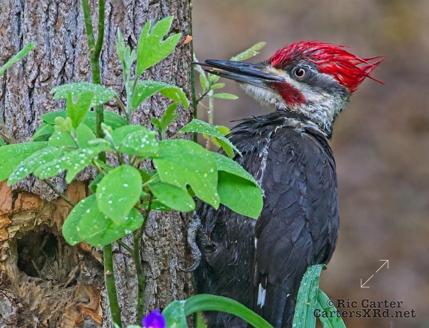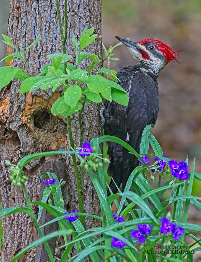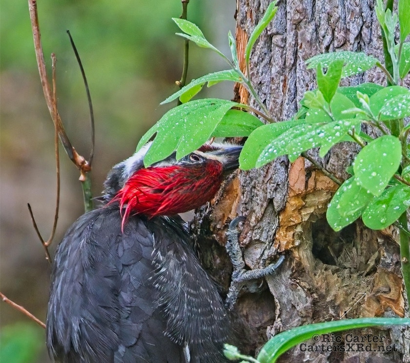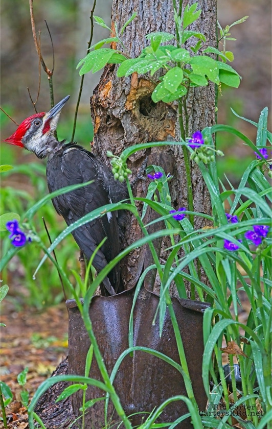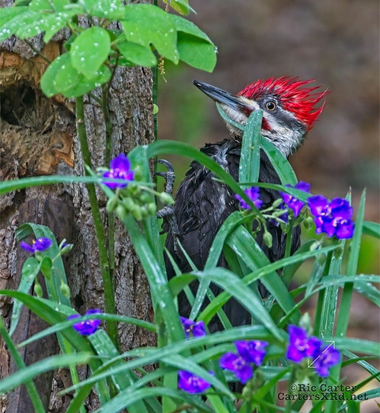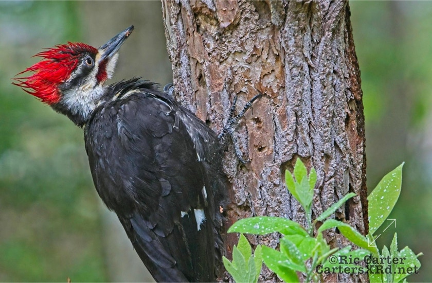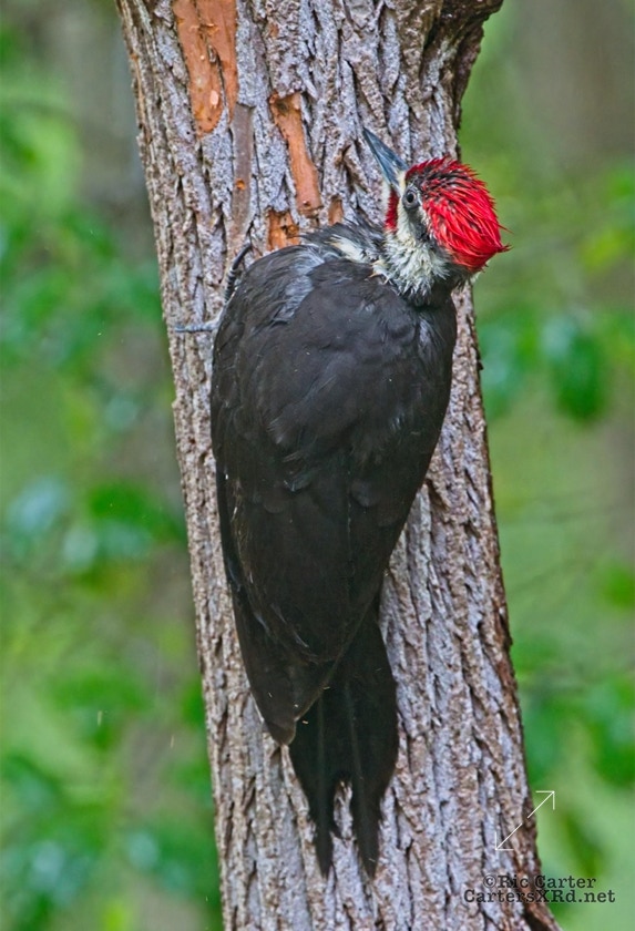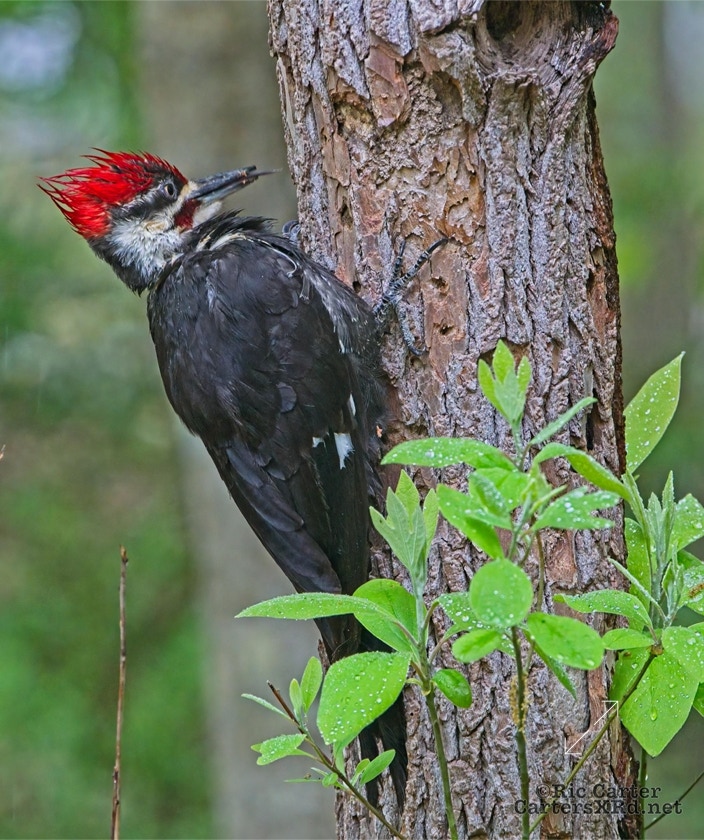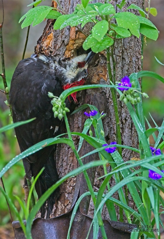 We looked out the window last week on a rainy day. There was a male pileated woodpecker working one of the older sassafras in the backyard. I figured there was no way it would work, but could not leave photographing him untried. He didn’t seem to mind me at all. Maybe he’s seen me hanging around not eating birds. I took these photos April 18, 2022.