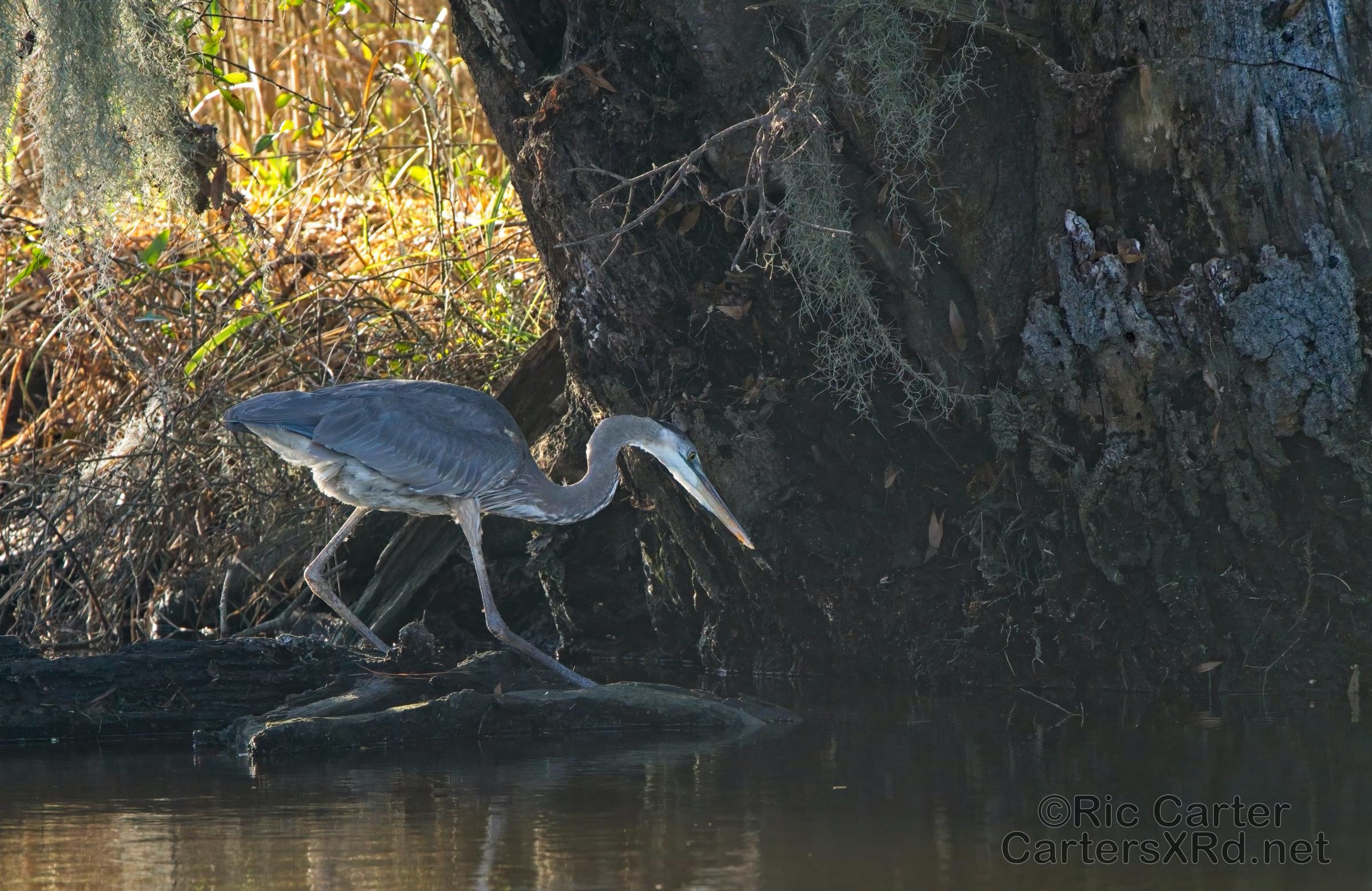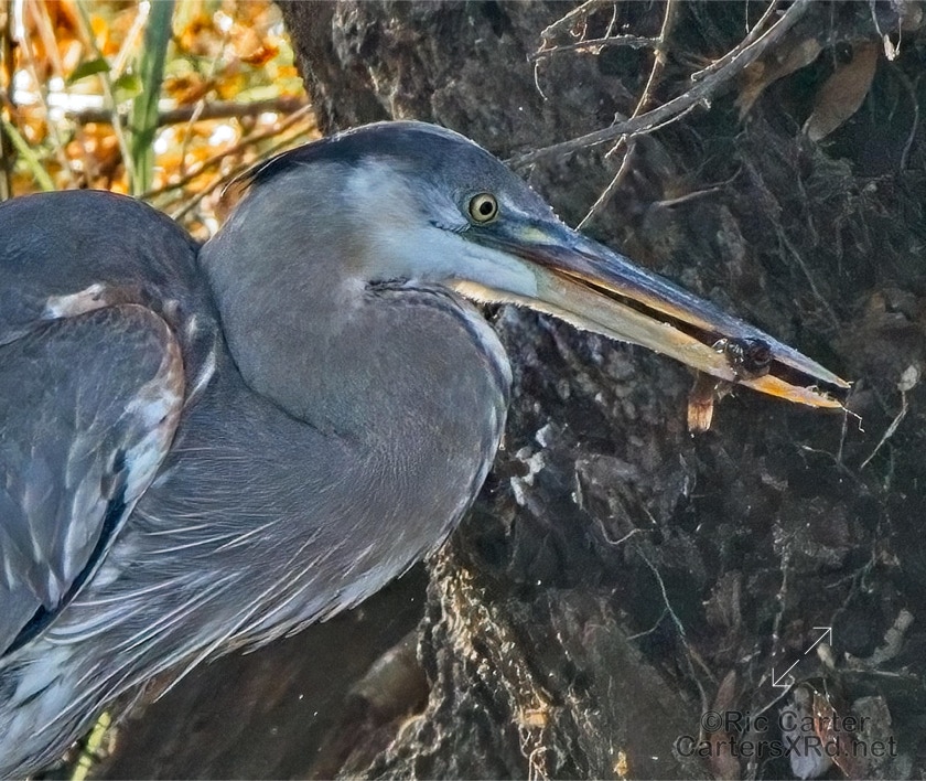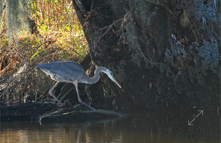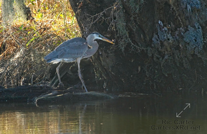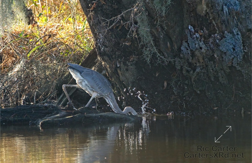 A swampy ditch may not be your idea of a good place for lunch, but some of us think it works pretty well. This great blue heron here grabs a small catfish near Whichards Beach. I saw this guy January 7, 2022.