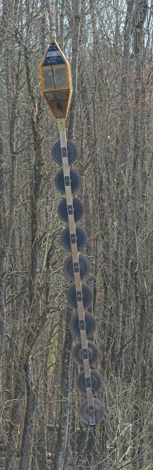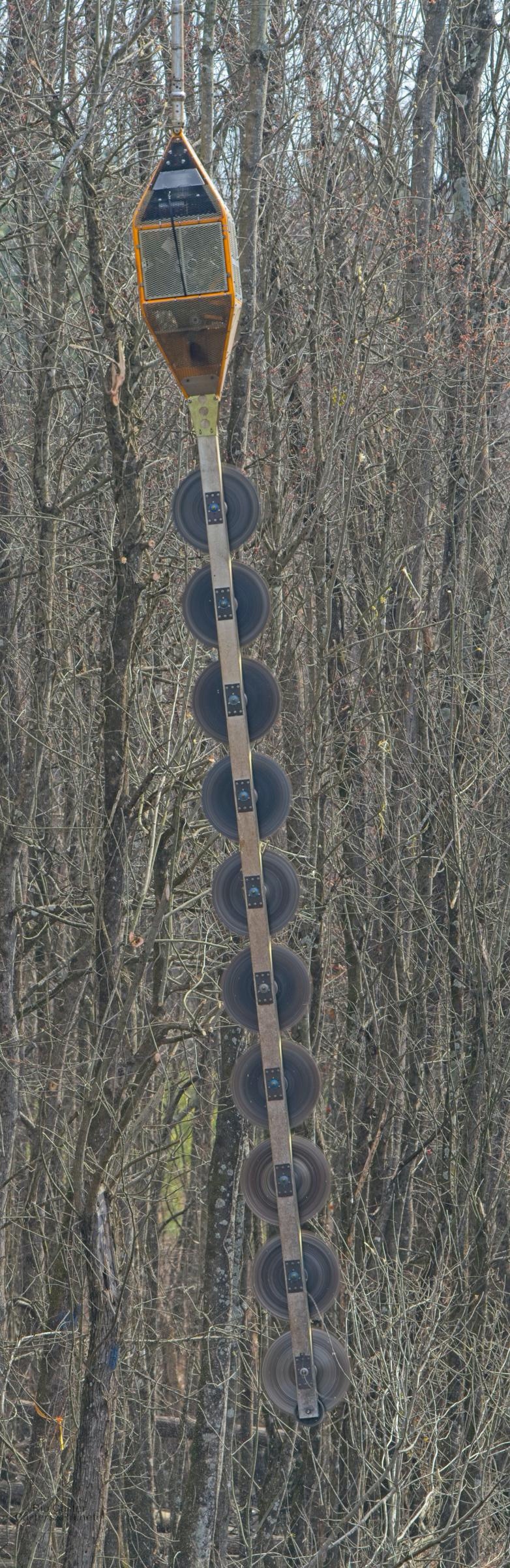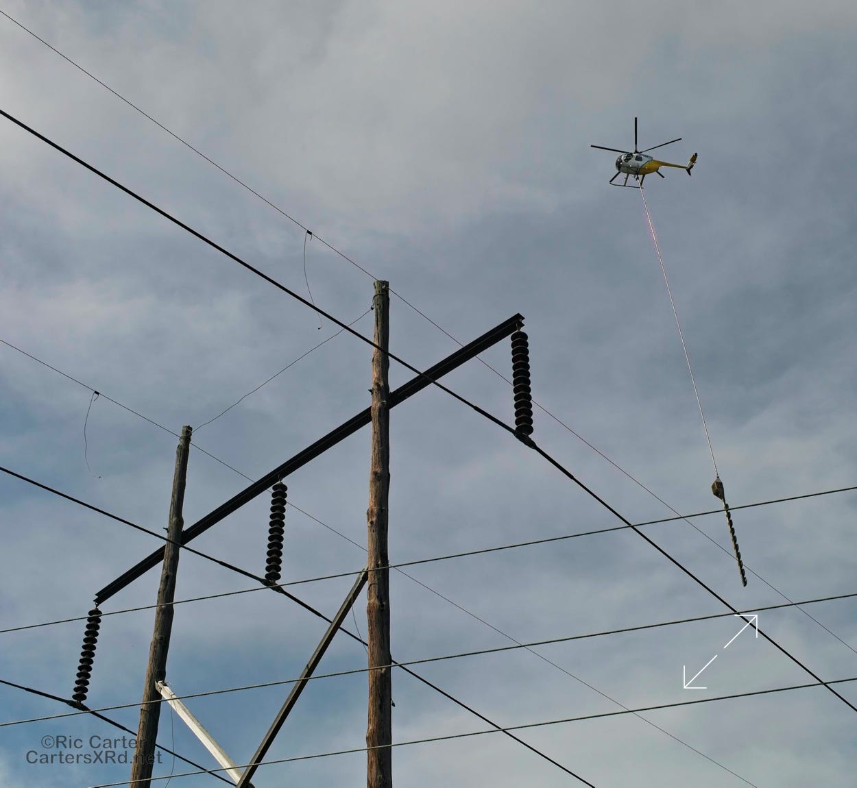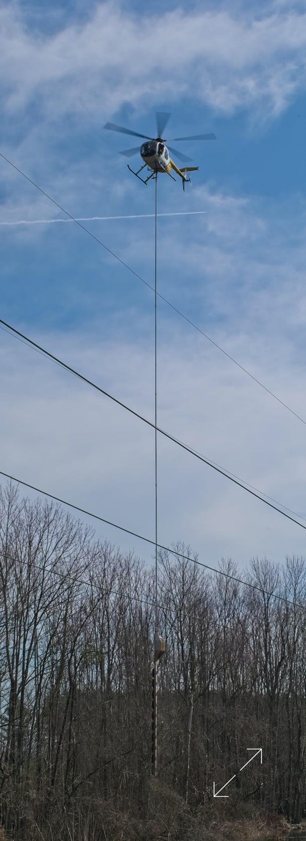 I saw a helicopter low and working south of Grimesland February 12. Then I found the chopper running a chopper along the Duke Energy right-of-way along Chicod Creek. Suspended below the Hughes 369D was a 10-blade circular saw that was being taken along the branches of trees intruding into the right-of-way. Not a simple piloting job, but easier than getting crews into the wetland they were attacking.