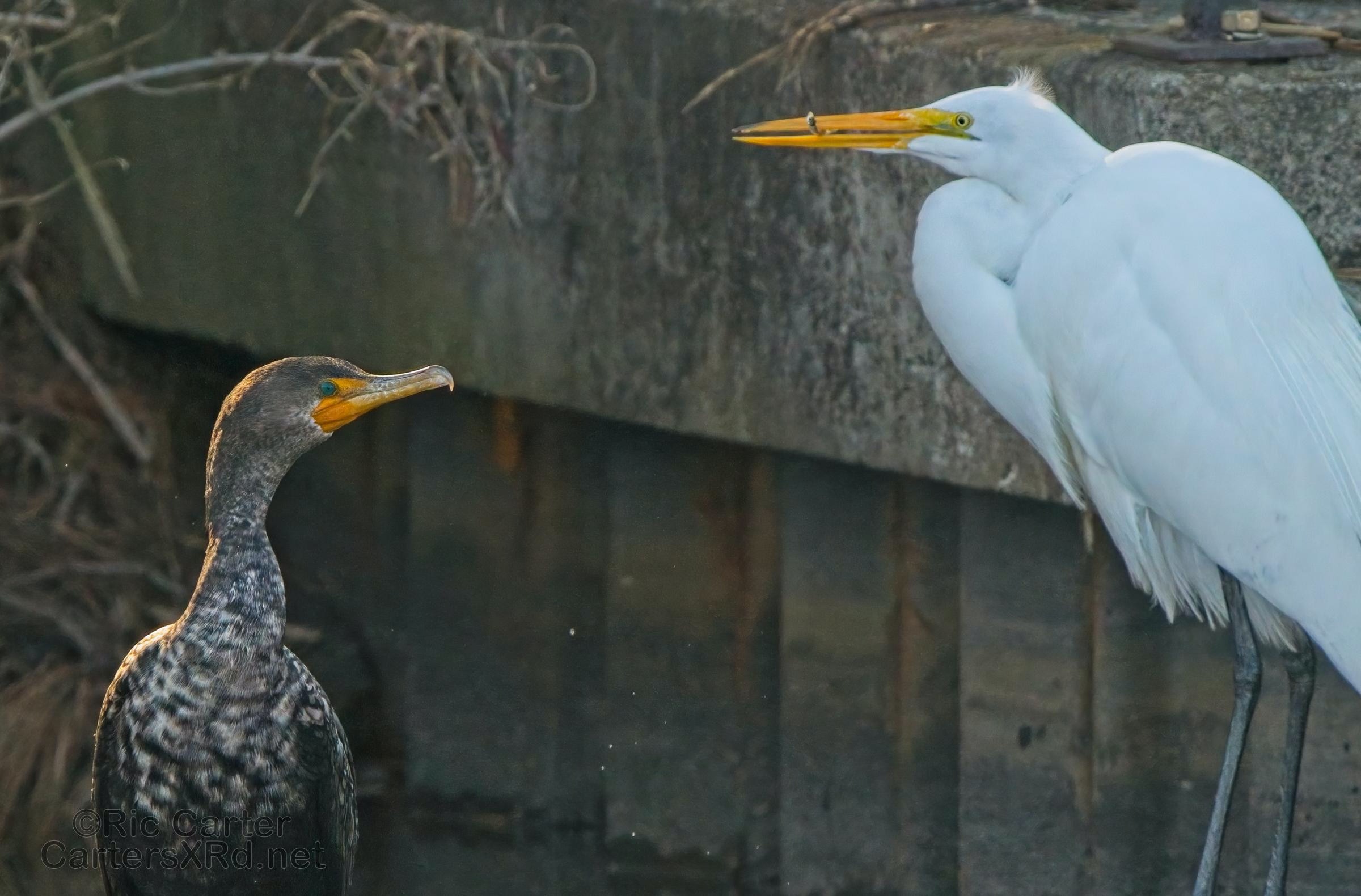 Double-Crested Cormorant & Great Egret, Outfall Canal 2