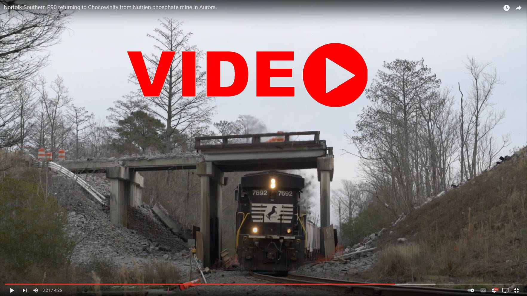 Here are a couple of Norfolk Southern freights. Both originate in Chocowinity NC. One goes back and forth to the phosphate mine in Aurora (P90). The other goes back and forth daily to New Bern (P97) to connect with other freights. Details are listed on each at Youtube.