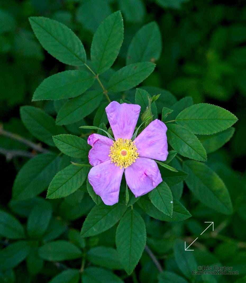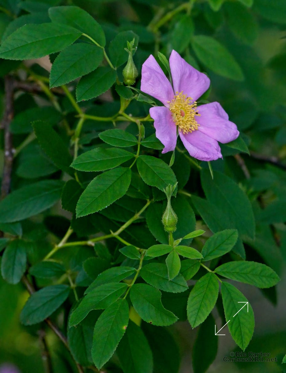 The swamp get a bit brighter and lighter as the shadows deepen in May. That’s when the swamp rose blooms.