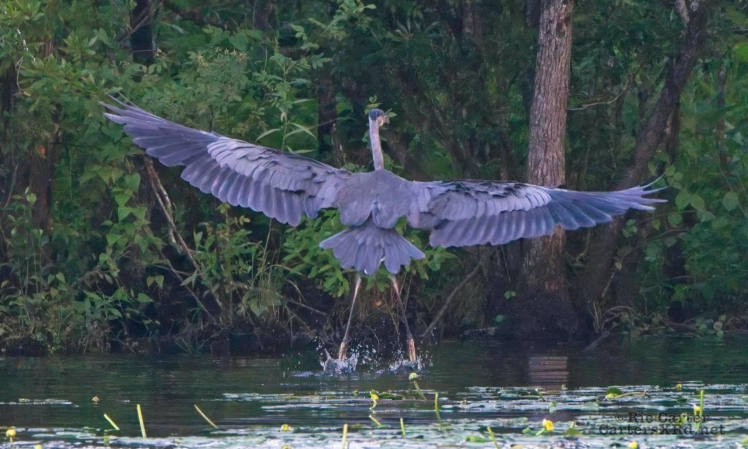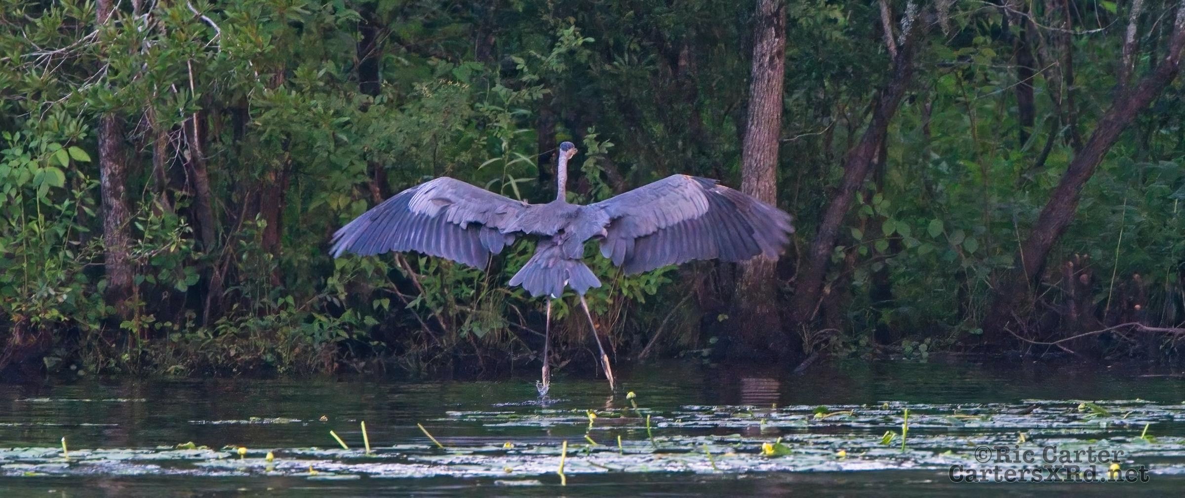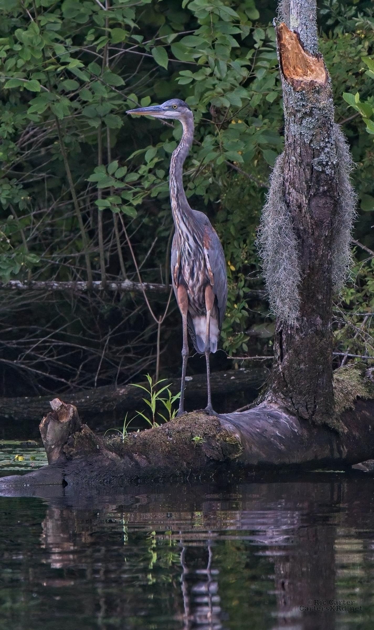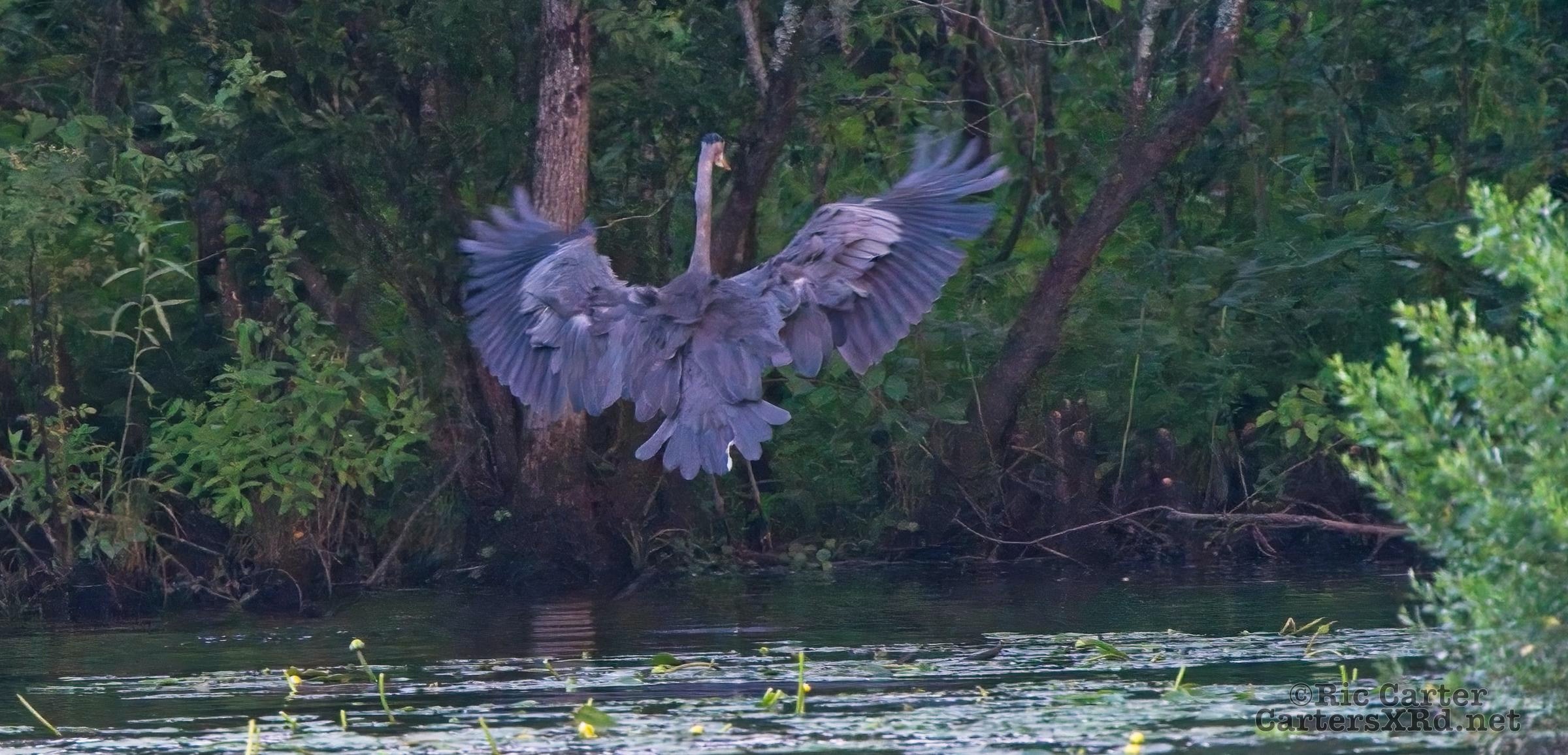 We watched a heron who, as he sometimes does, sat on the other side of the creek watching us at sunset. He got up and moved a little down creek when boat traffic picked up. July 15, 2022.