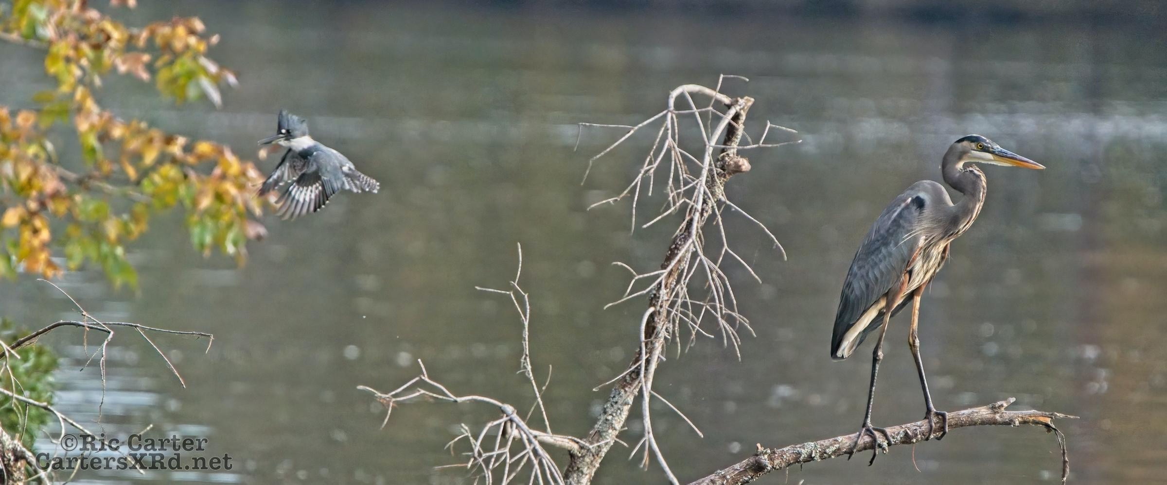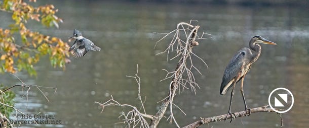 Belted Kingfisher & Great Blue Heron